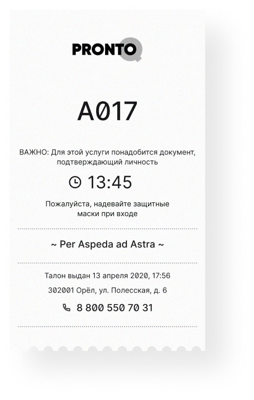 Предоставляем API для интеграции сложных сценариев, авторизации клиентов, привязывание номера талона к заказу, экспорту статистической информации в BI системы и тд.