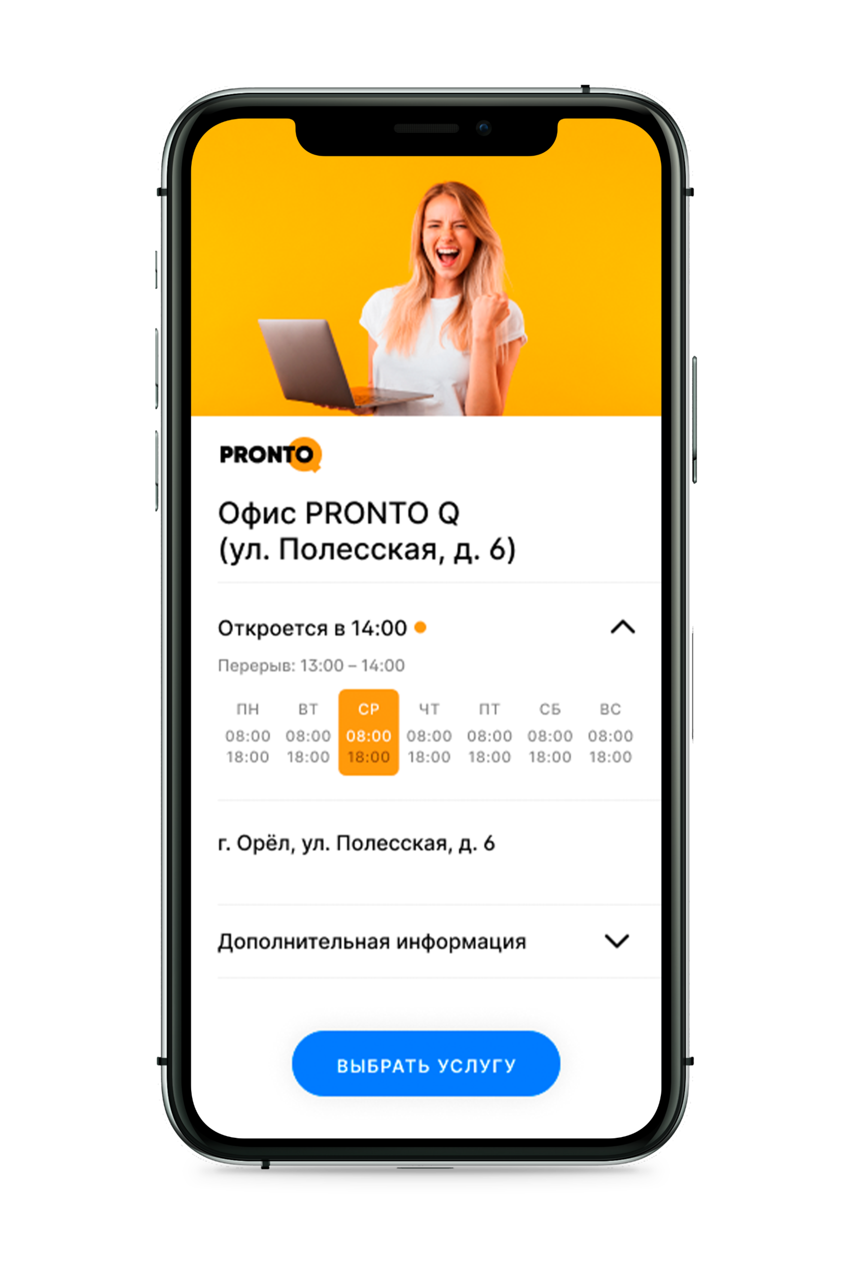 В случае невозможности оказания услуги или превышения времени ожидания обслуживания — информация автоматически поступает управляющему для принятия решения.